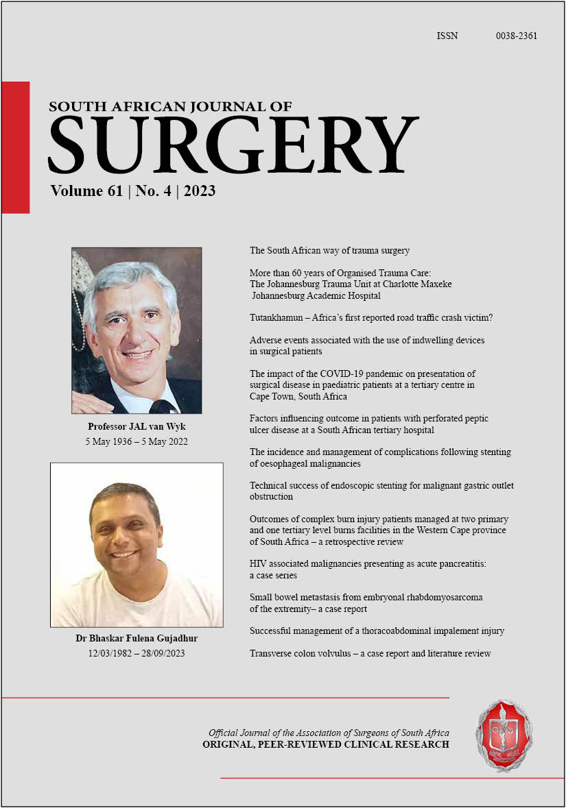 The full issue PDF is available for Members of The Association of Surgeons of South Africa (includes adverts) at https://pub.medpharm.co.za/sajs-vol-614-2023/