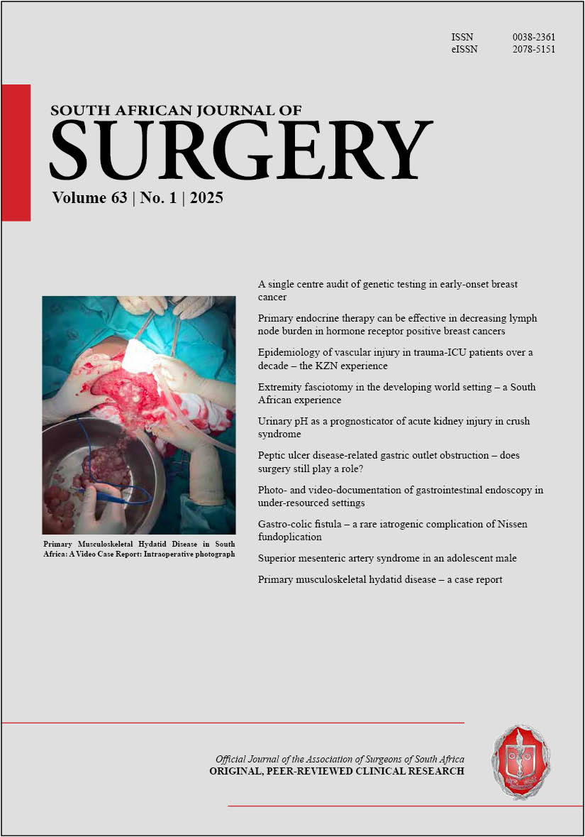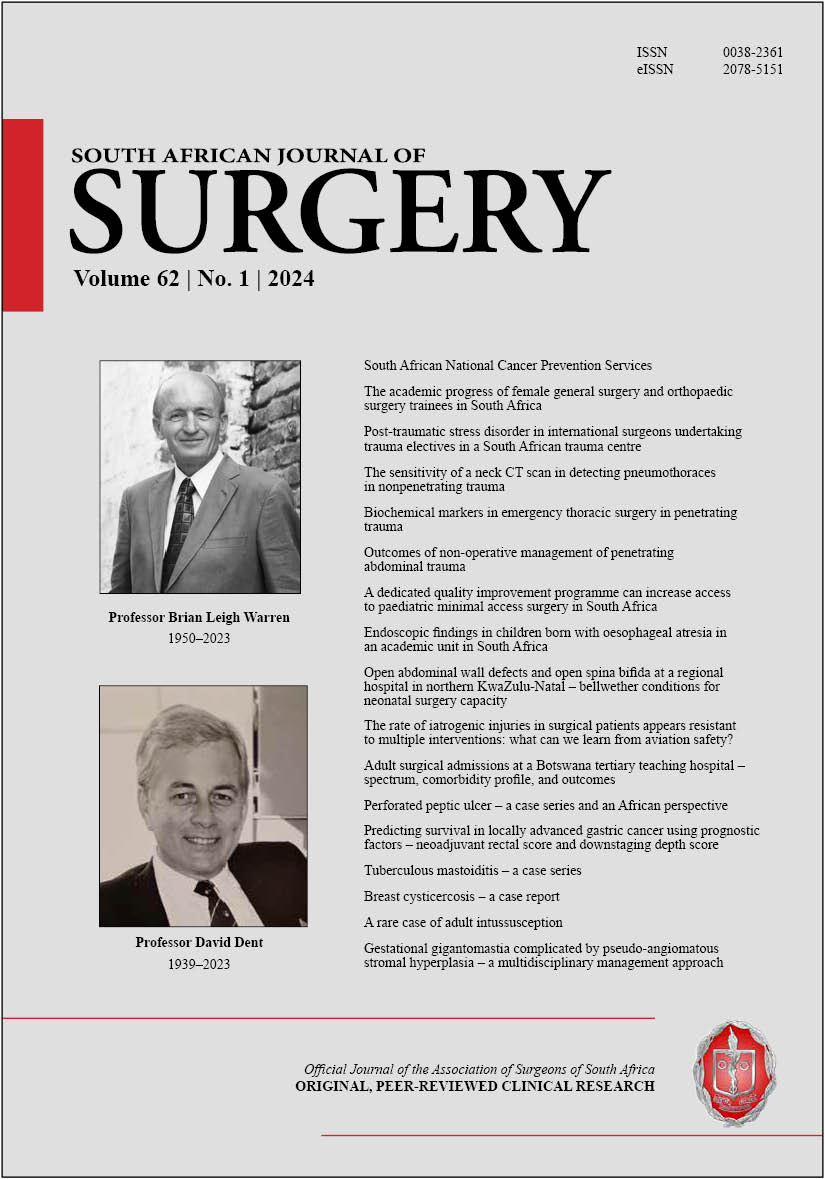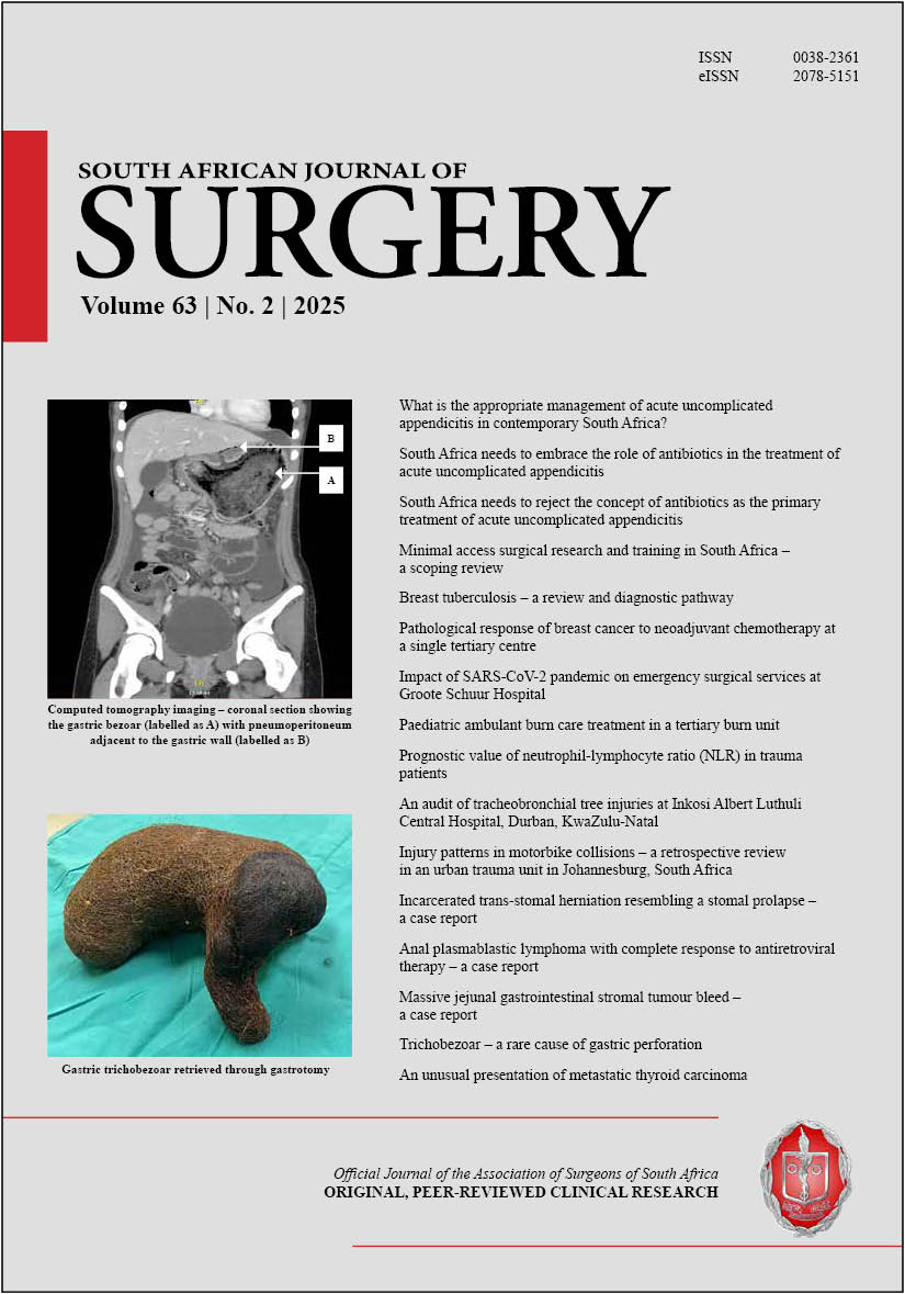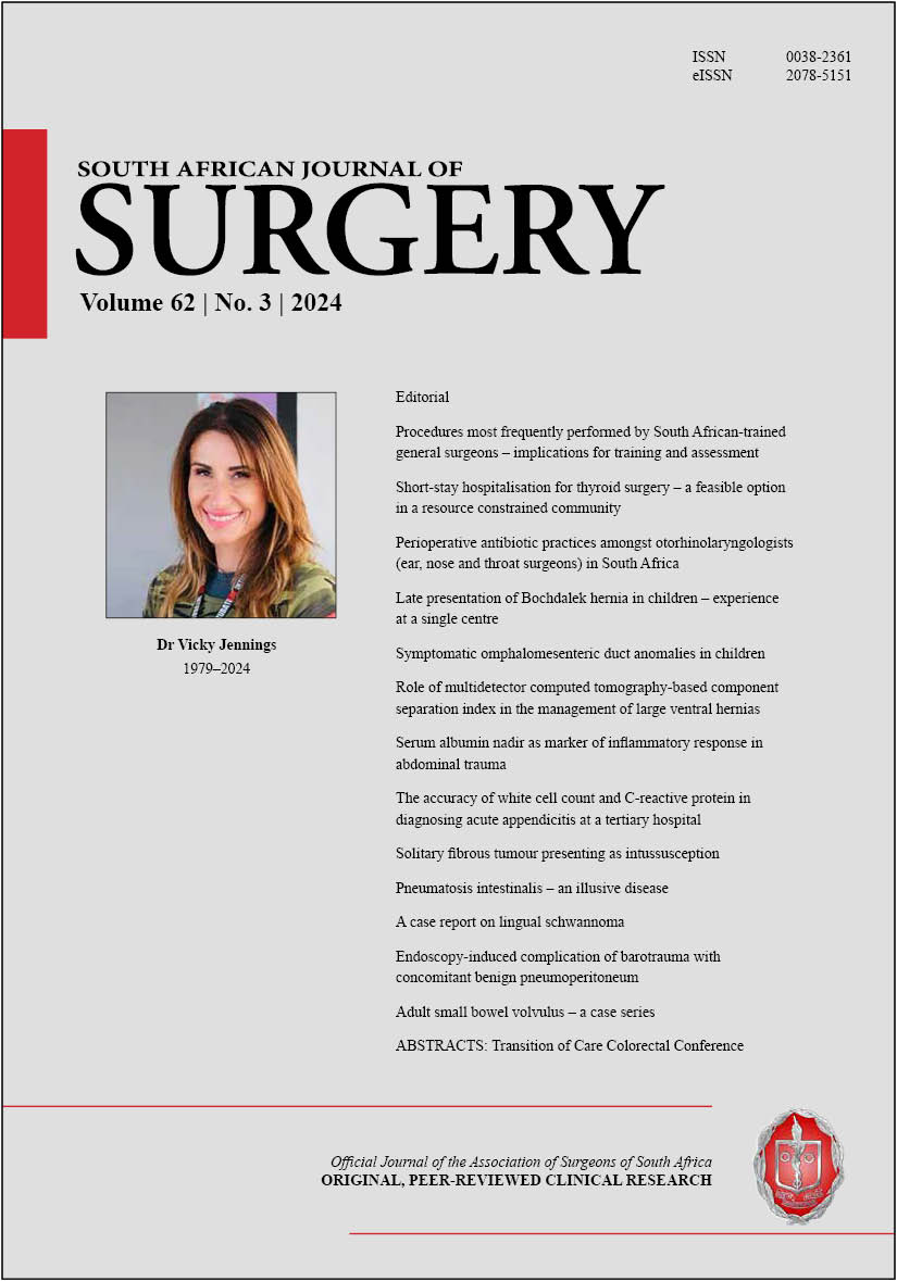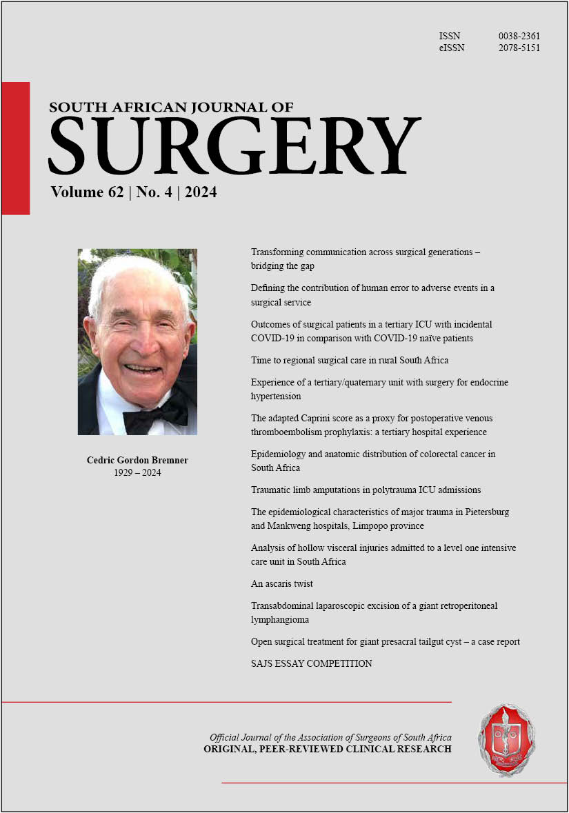 The full issue PDF is available for Members of The Association of Surgeons of South Africa (includes adverts) at https://pub.medpharm.co.za/sajs-vol-622-2024/