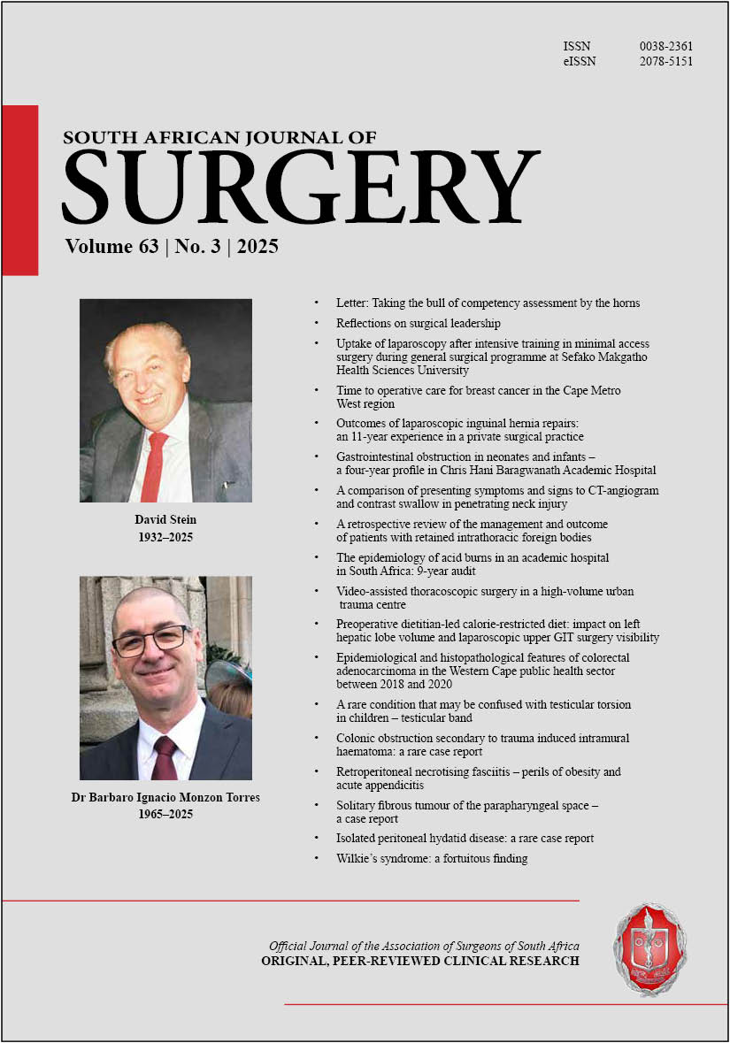 The full issue PDF for Members of the Association of Surgeons of South Africa (includes adverts) is available at https://pub.medpharm.co.za/sajs-vol-633-2025/